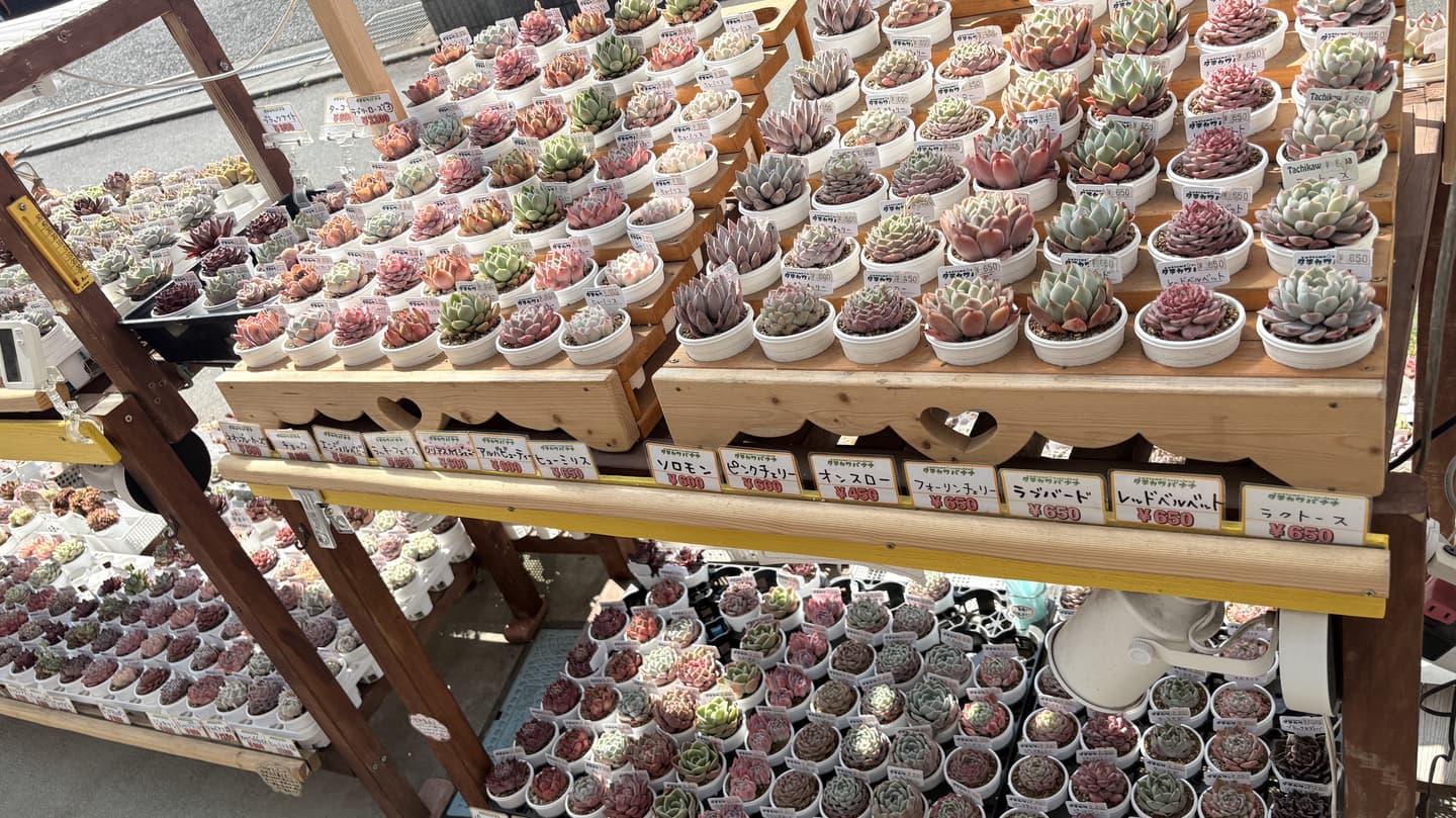 東京都の多摩地区。IKEA、ららぽーと、Green Springsなど、交通の便も良く、近年街の栄え方の著しい立川市は、関東地方でも有数の乾燥地で、多肉植物の栽培にはとても適している気候において、エケベリアを中心とした多肉植物の無人販売店です。