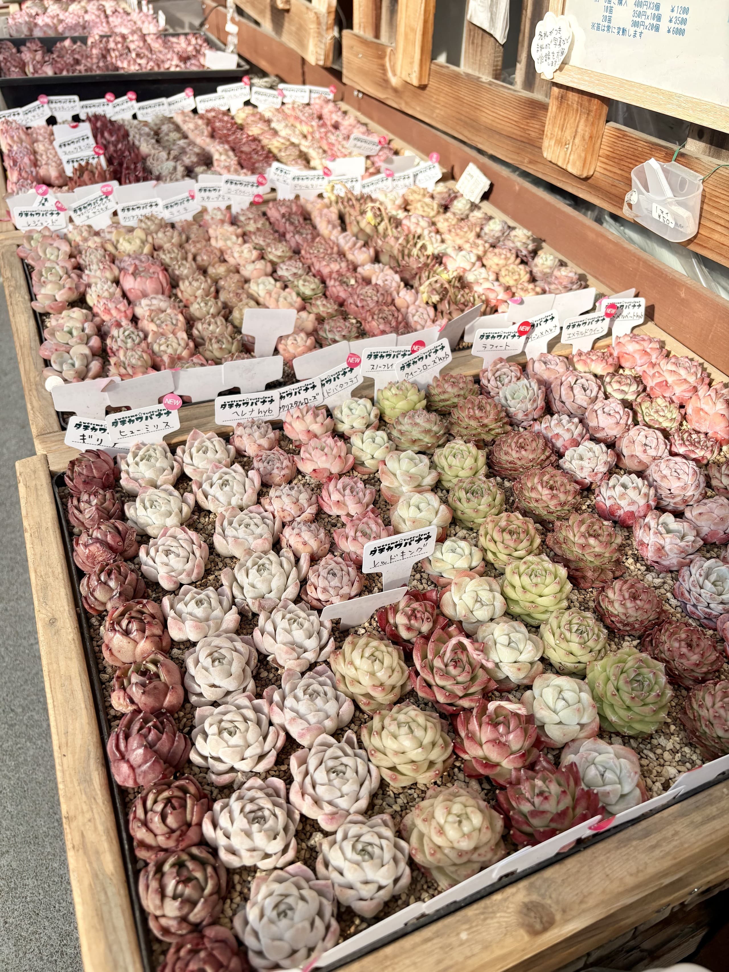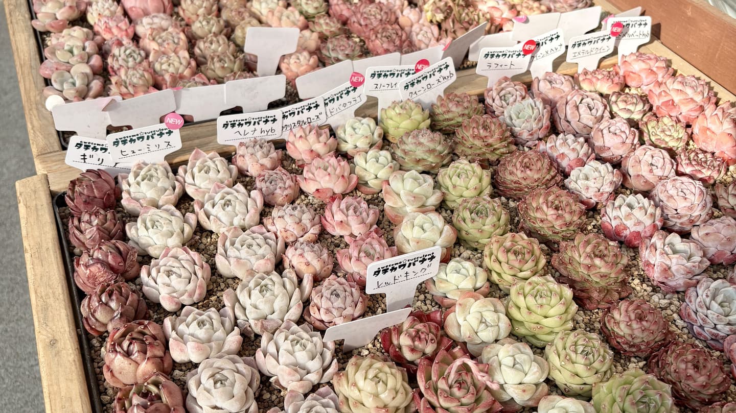 タチカワバナナ名物セルフ多肉狩りコーナーや、季節によっては色彩々の多肉植物があります。
